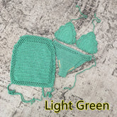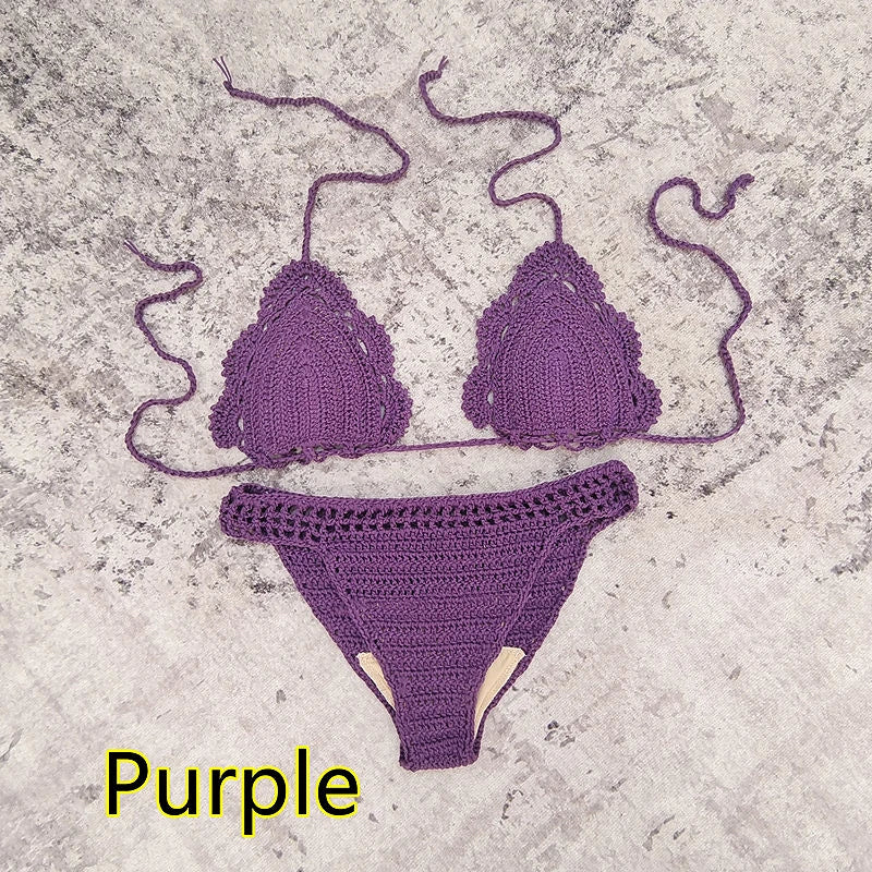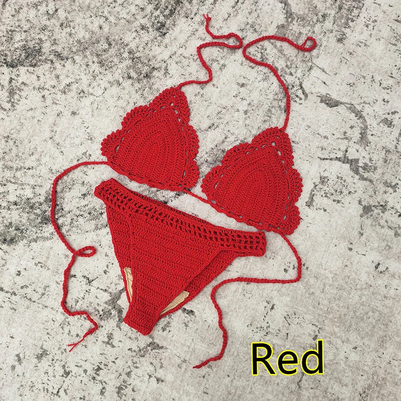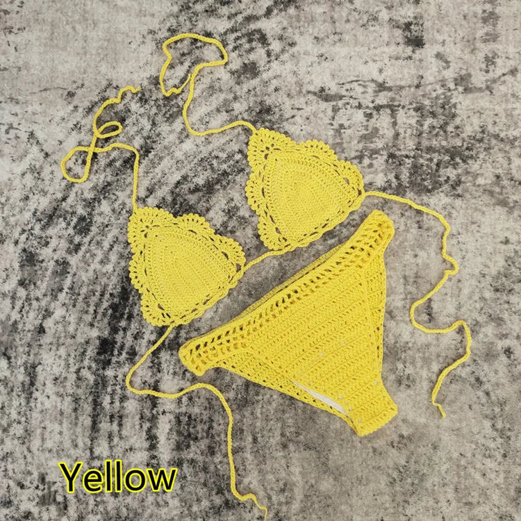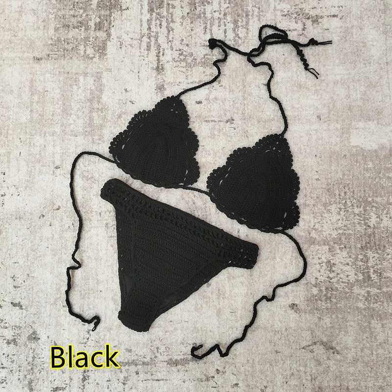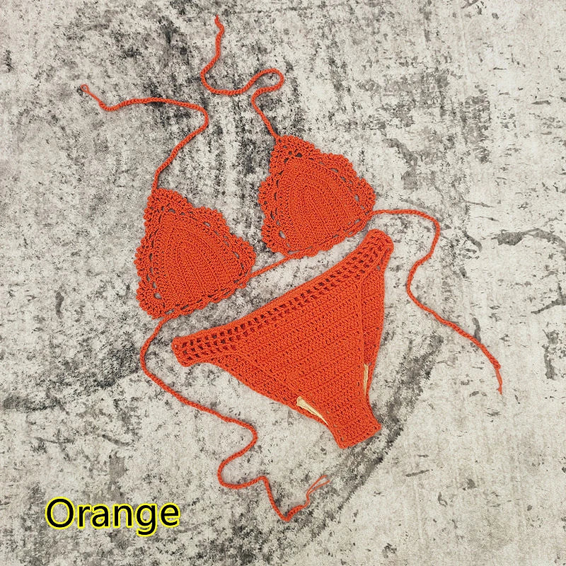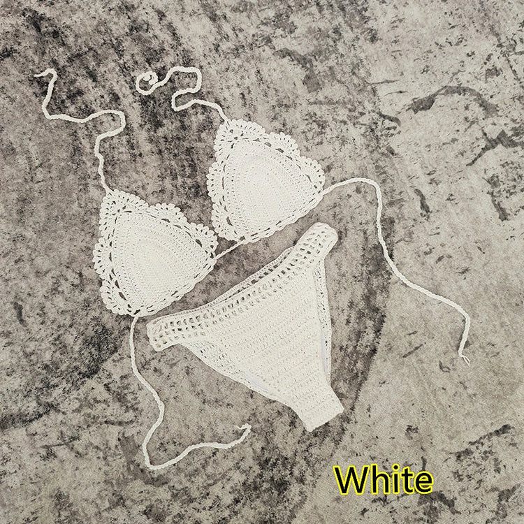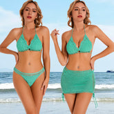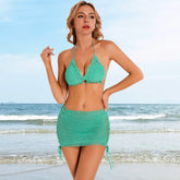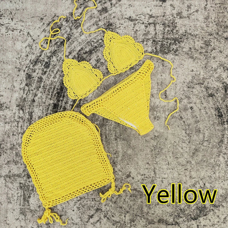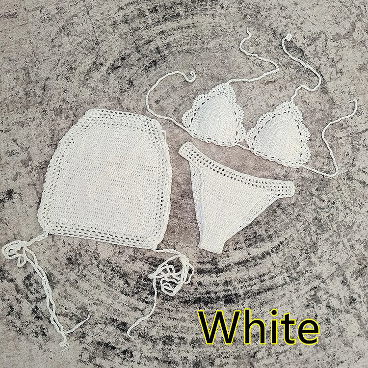 3 Piece Hand Crochet Beach Bikini Set Women Swimwear Cover UP Mini Skirt Swimsuit Suit