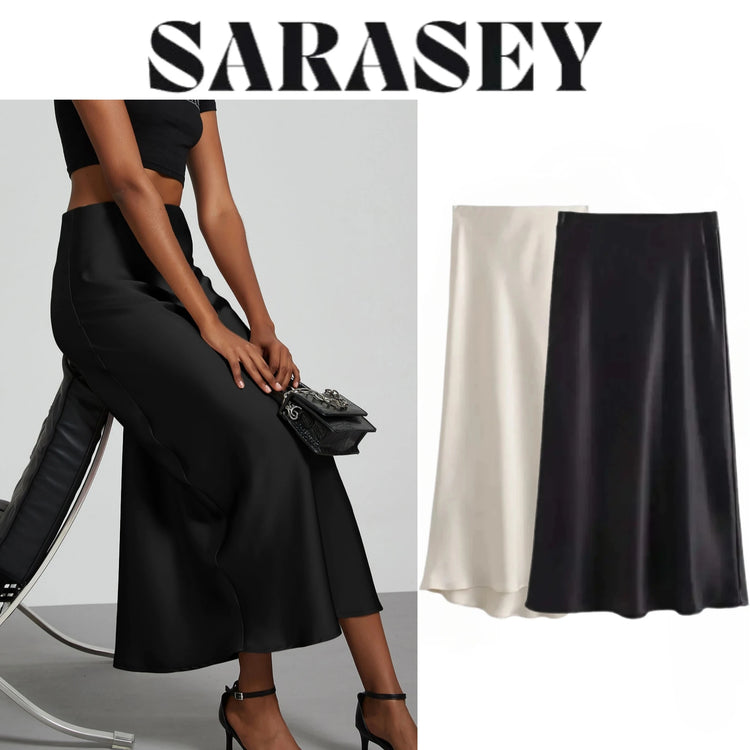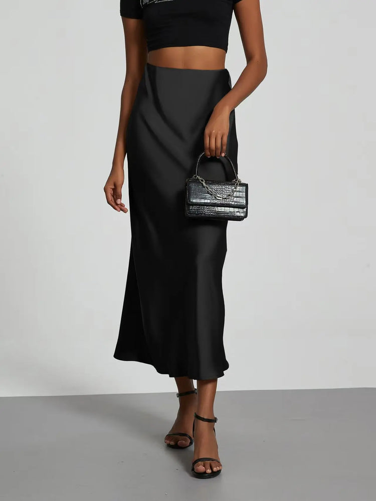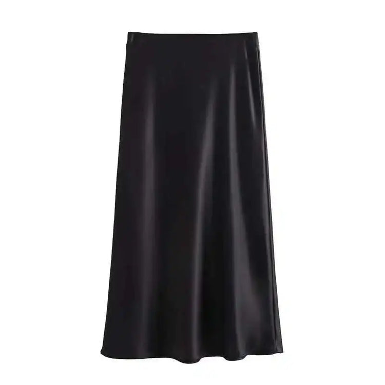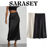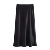 Skirt woman 2025 falds Satin Black Skirt Women Ropa Mujer юбка High Waist Long Skirts White Midi Skirt Office Elegant Skirts