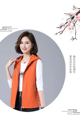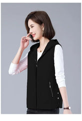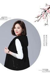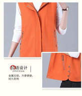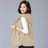 Vest Jacket Women Long Waistcoat Outerwear 2025 New Spring Autumn Middle Aged Loose Sleeveless Hooded Casual Khaki Black Tops