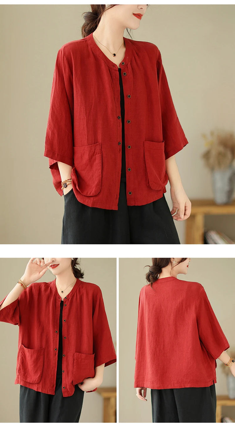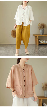 Woman Top Single-Breasted Loose Shirts & Blouses for Women Pocket Cheap Tops Female