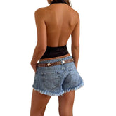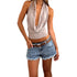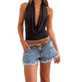 Women Cowl Neck Halter Tops Sexy Draped Front Low Cut Backless Tank Top Ruched Open Back Y2k Coquette Party Club Crop Tops