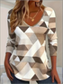 Women Elegant Minimalist Spring Top 2024 New Geometry V-Neck Long Sleeve Blouse Fashionable T-Shirt
