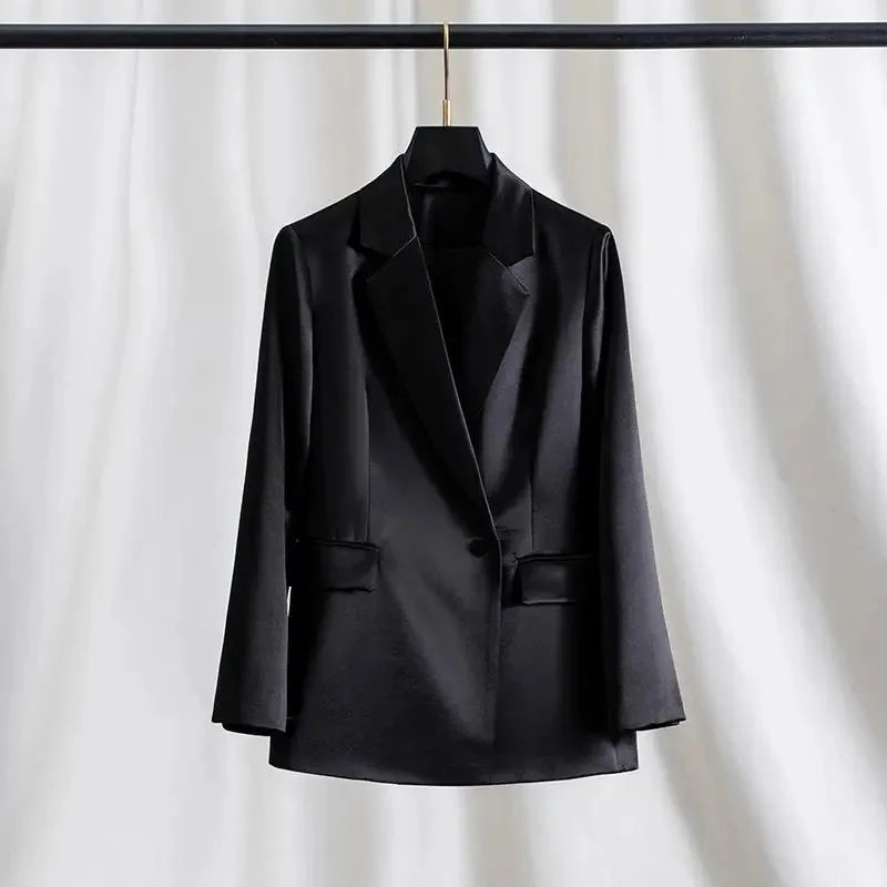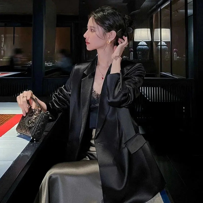 Women Outerwear for Spring and Summer 2025 New Flowing Satin Suit Light Luxury High-end Loose top Temperament Slimming Outerwear